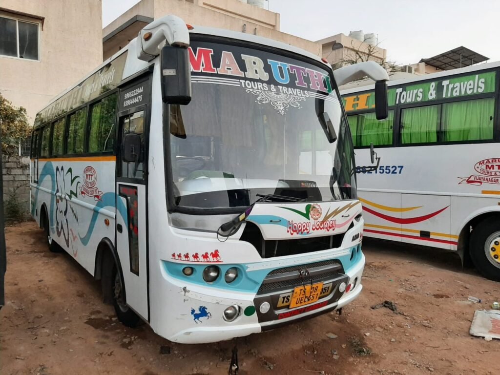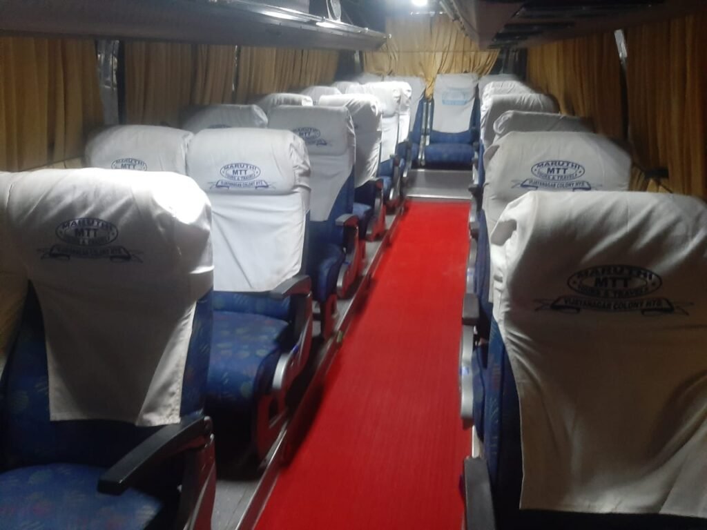 The 22 Seater Mini Bus rental in Hyderabad by Maruthi Tours and Travels is the most practical and comfortable solution for medium group travel. Whether it’s a family function, corporate event, educational tour, or pilgrimage, our mini bus ensures everyone enjoys the journey together. With clean vehicles, professional service, and a customer-first approach, Maruthi Tours and Travels makes every trip convenient, safe, and memorable.