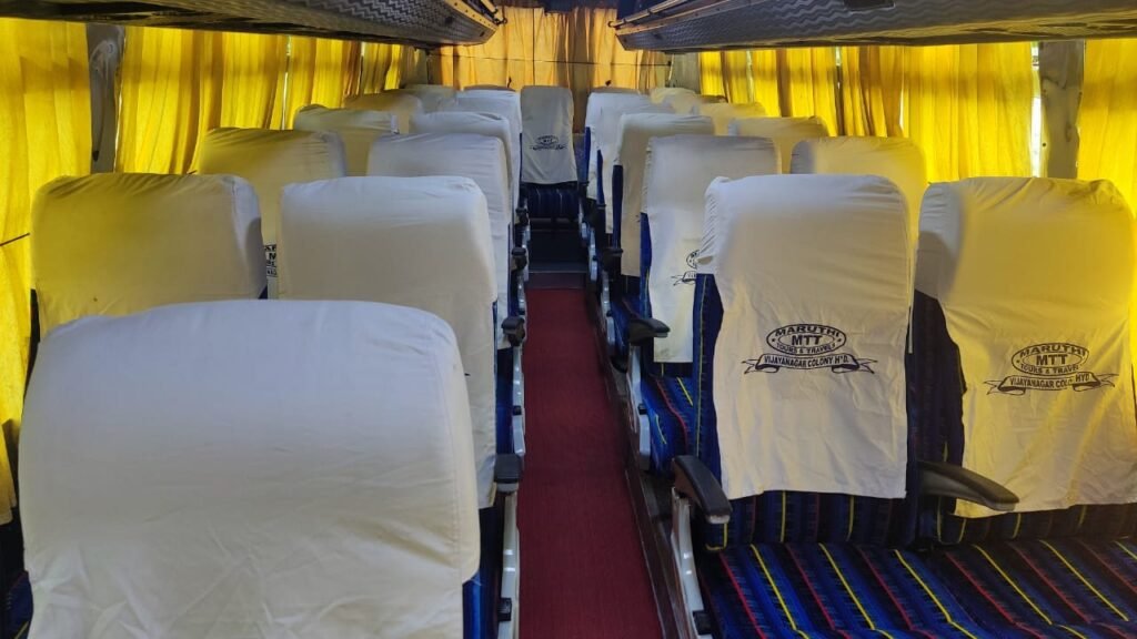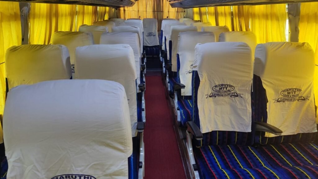 The 28 Seater Bus rental in Hyderabad by Maruthi Tours and Travels is a perfect choice for groups looking for both comfort and practicality. Whether it’s a wedding, corporate trip, school outing, pilgrimage, or family vacation, this bus allows everyone to travel together in a safe and enjoyable way. Backed by Maruthi Tours and Travels’ reputation for punctuality, professionalism, and customer care, you can be assured of a seamless travel experience every time you book with us.